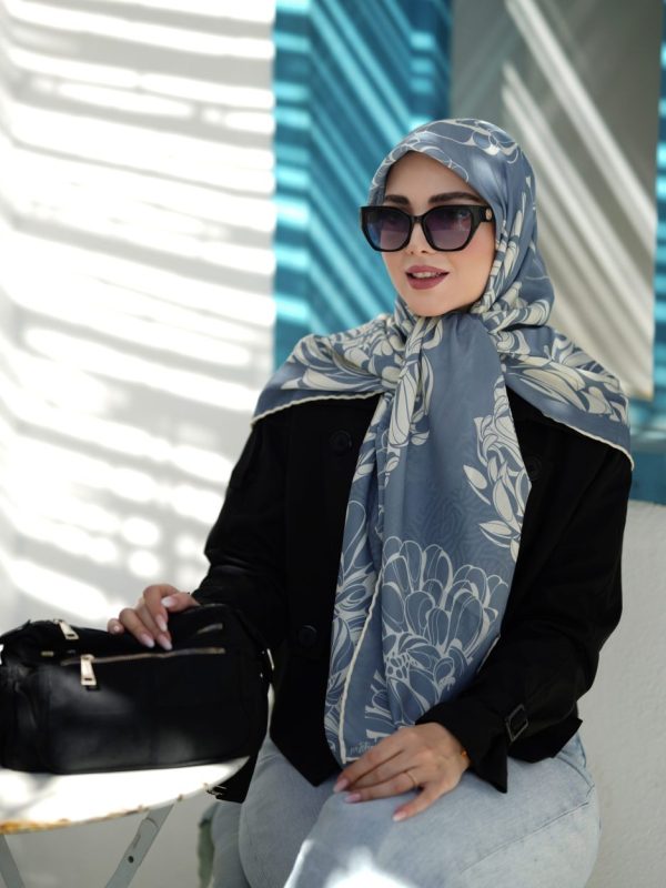 روسری ابریشم مجلسی توییل مدل پردیسان سرمه ای