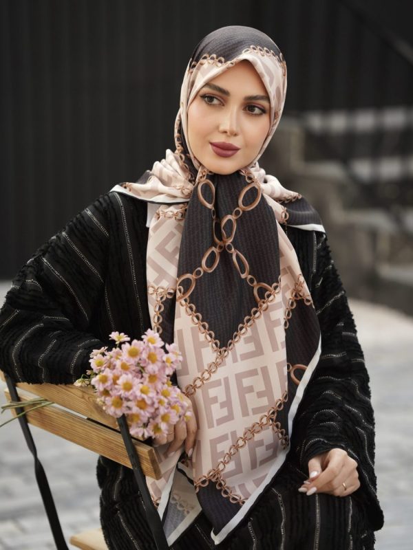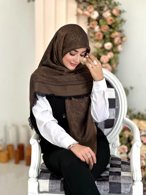 روسری ابریشم نخ ژاکارد مجلسی قواره 110 قهوه ای شکلاتی