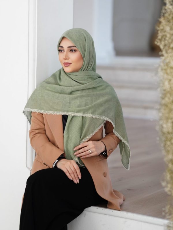 روسری سوپر نخ تک رنگ سبز پاستیلی