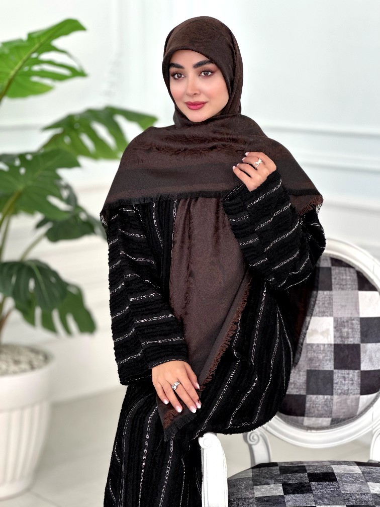 روسری ابریشم نخ ژاکارد مجلسی مدل سلین قهوه ای تیره