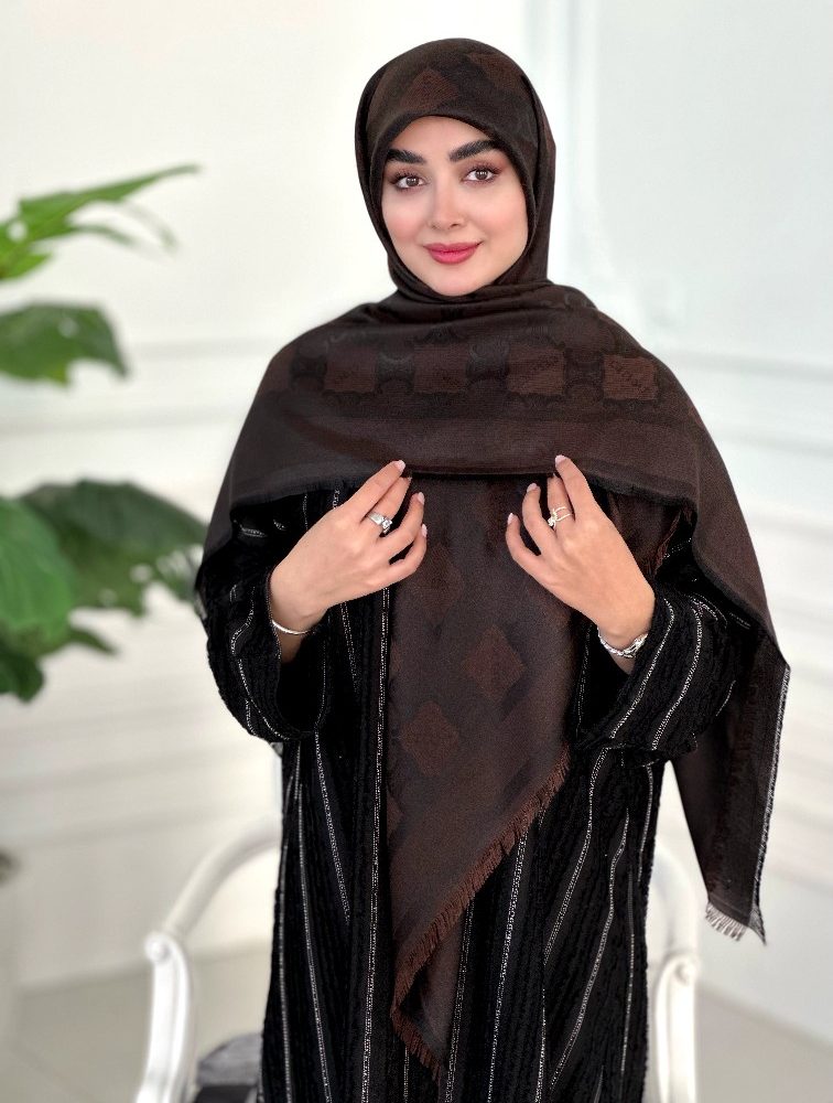 روسری ابریشم نخ ژاکارد مجلسی قواره 110 قهوه ای شکلاتی
