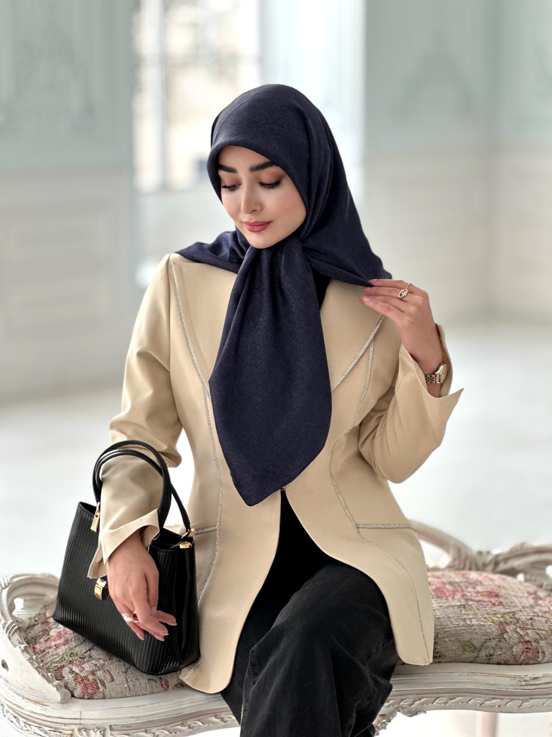 روسری فلورانس مجلسی رنگ سرمه ای قواره 100