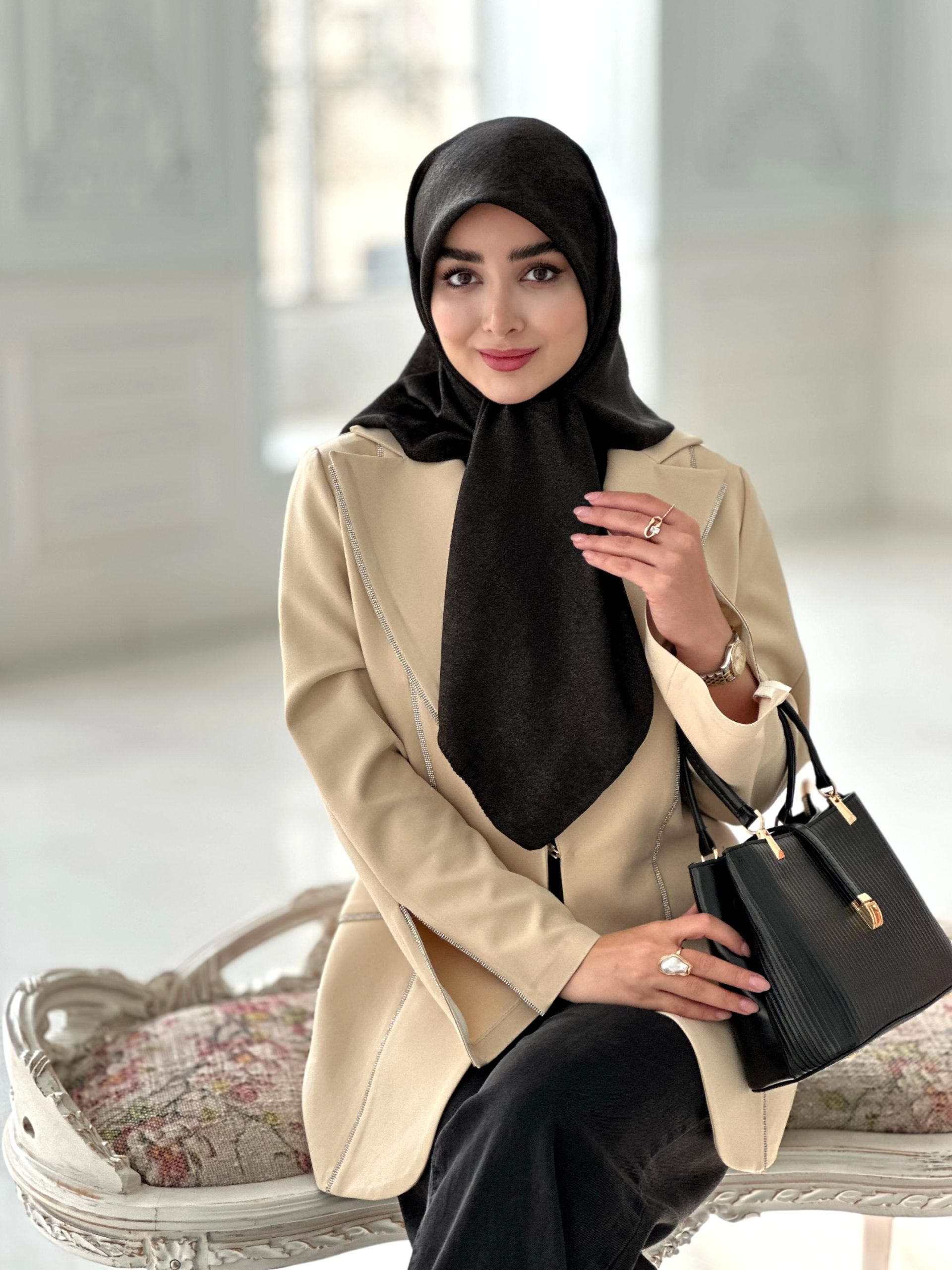 روسری فلورانس مجلسی رنگ کرم نسکافه ای