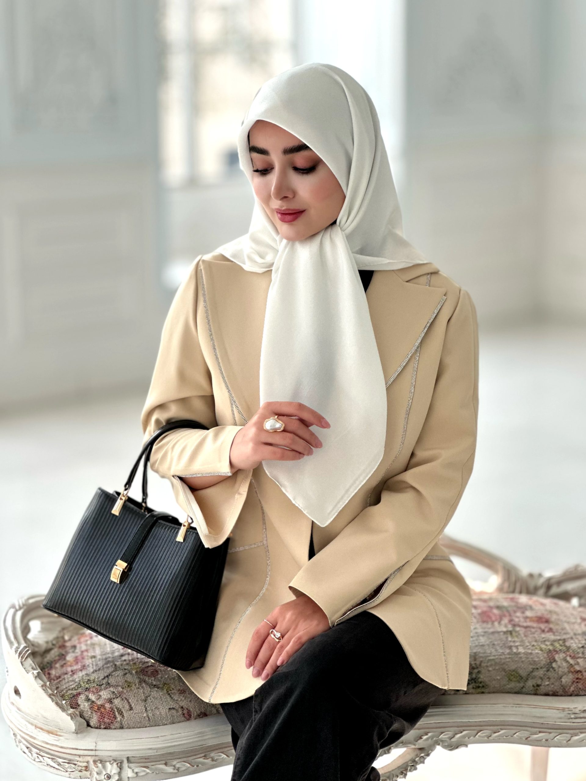 روسری فلورانس مجلسی رنگ کرم نسکافه ای