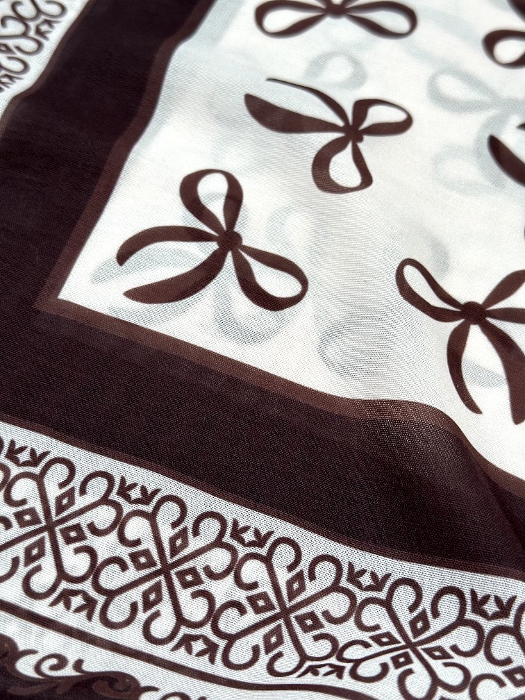 روسری نخی مدل نازنین زمینه تناژ قهوه ای حنایی پاپیون ها رنگ کرم