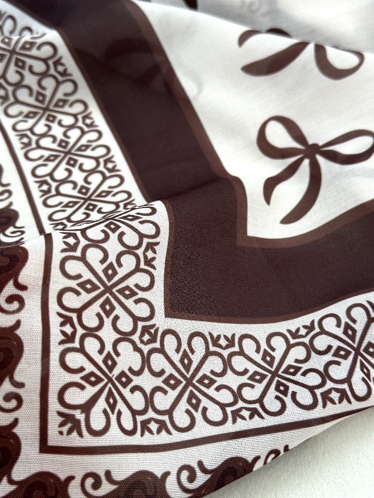 روسری نخی مدل نازنین زمینه کرم نسکافه ای پاپیون ها رنگ شکلاتی