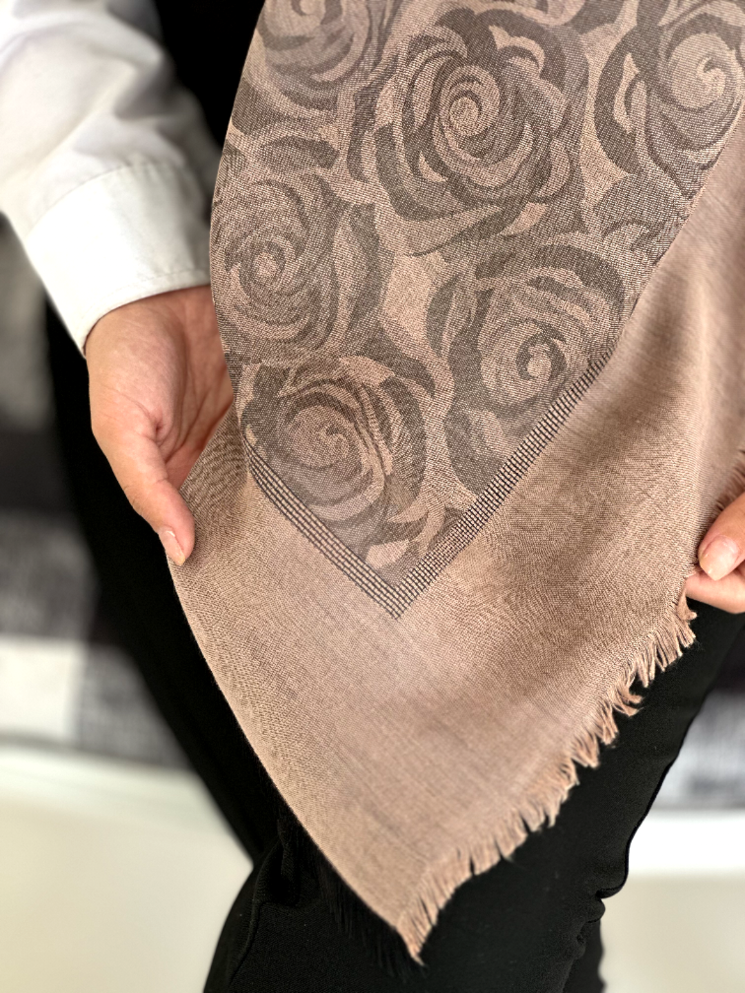 روسری نخ ژاکارد مدل رز نسکافه ای