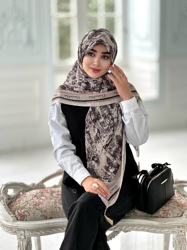 روسری پلیسه مجلسی مدل دیور تناژ مشکی کرم