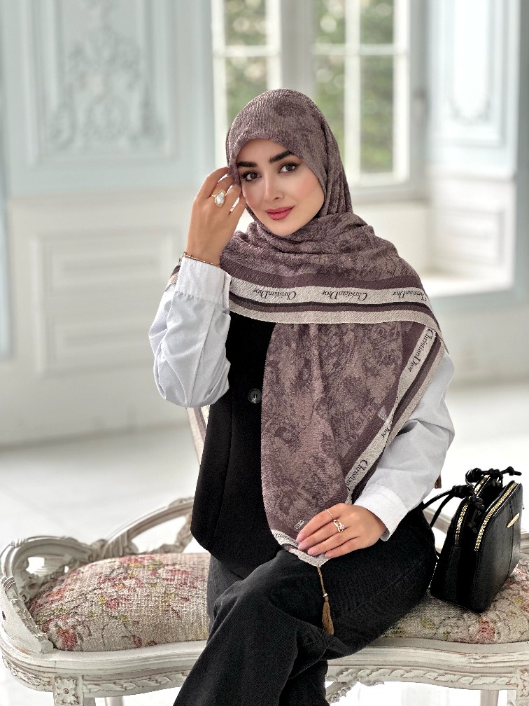 روسری پلیسه مجلسی مدل دیور تناژ دودی قهوه ای