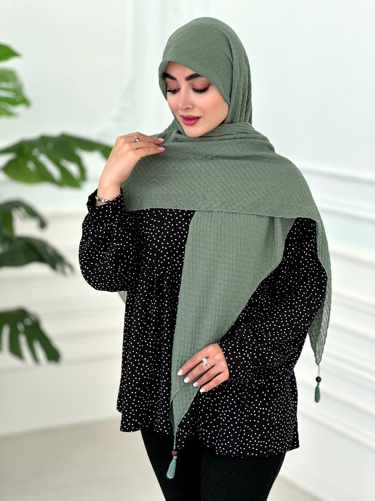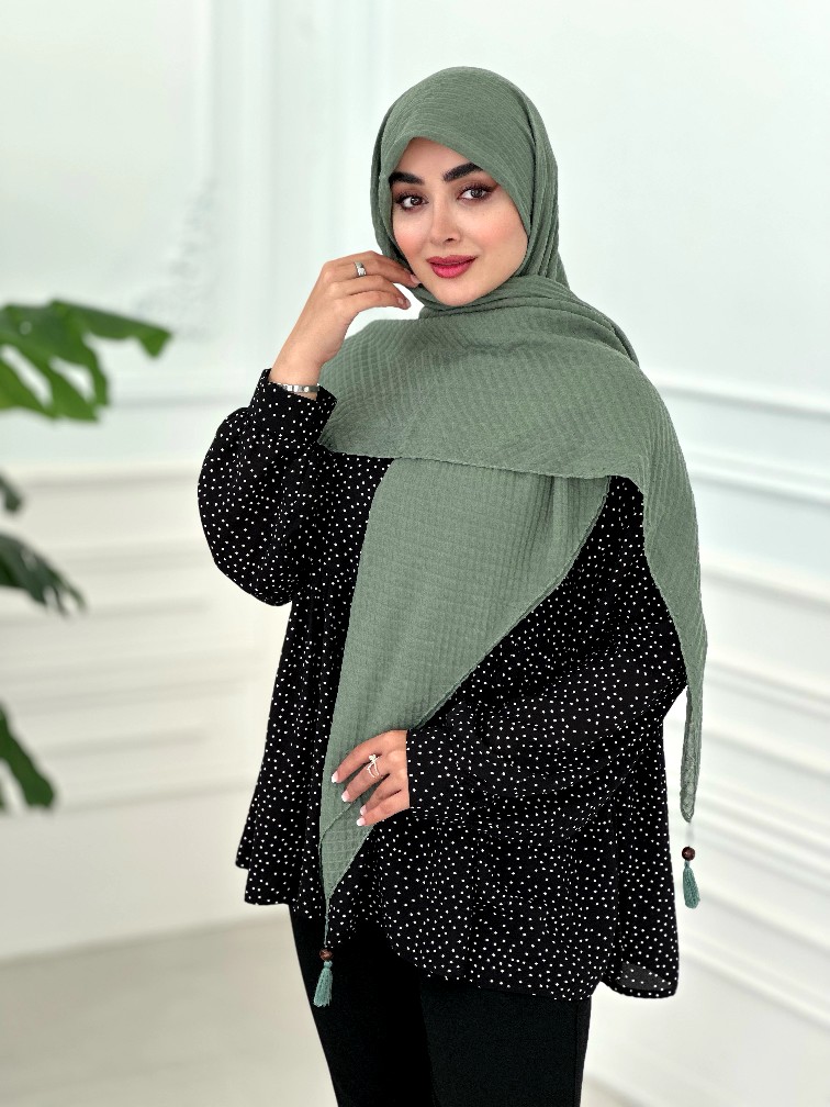 روسری پلیسه نخی سبز حنایی