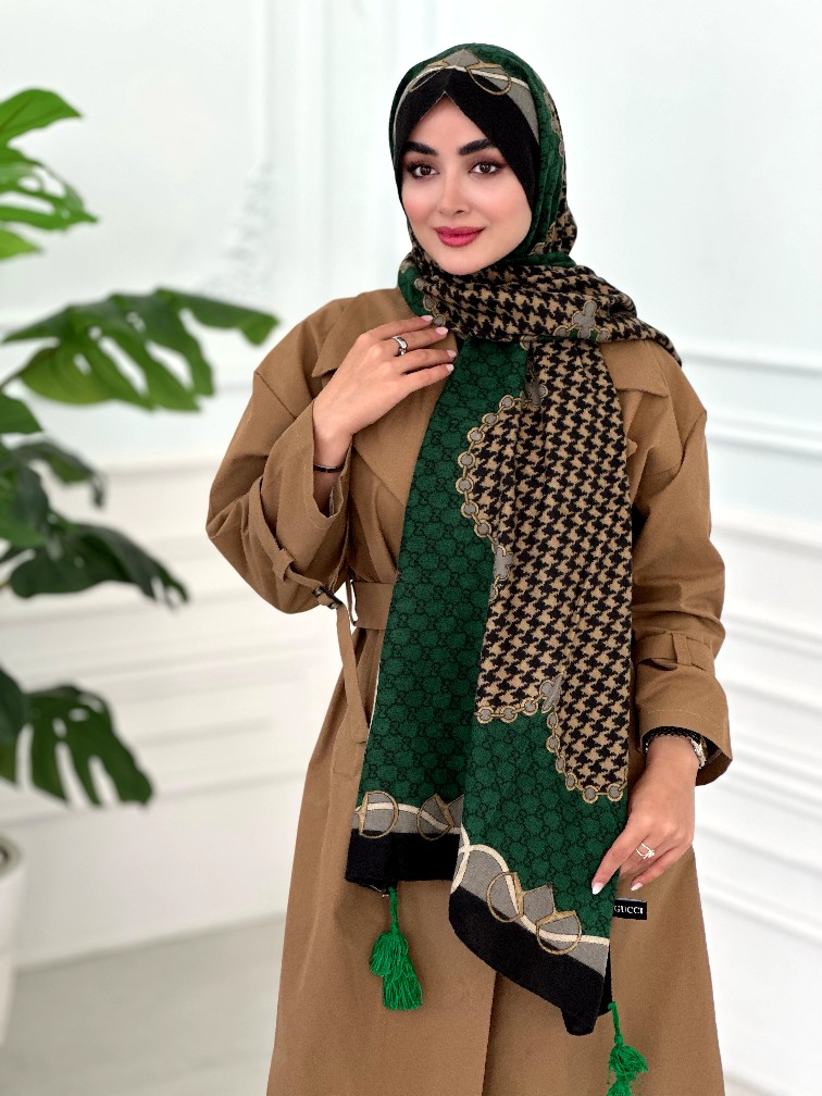 شال موهر طرح دار تناژ سبز مشکی
